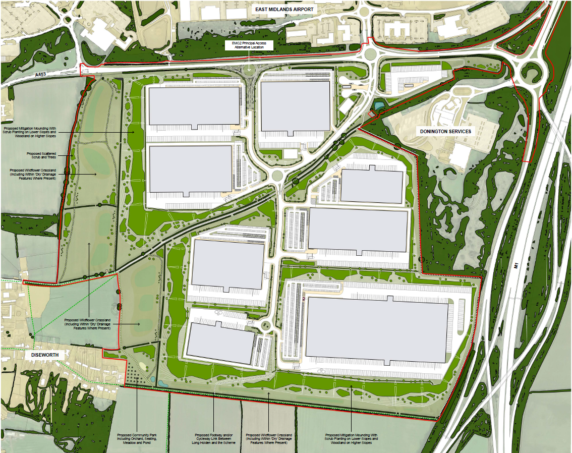 - Provision of road and infrastructure improvements, including new vehicular access from the A453 and a new estate road serving EMG2