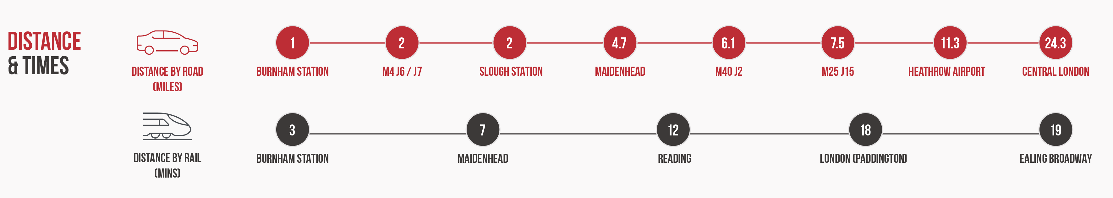 Slough and Burnham Railway stations within 3 miles, providing fast and direct rail access.