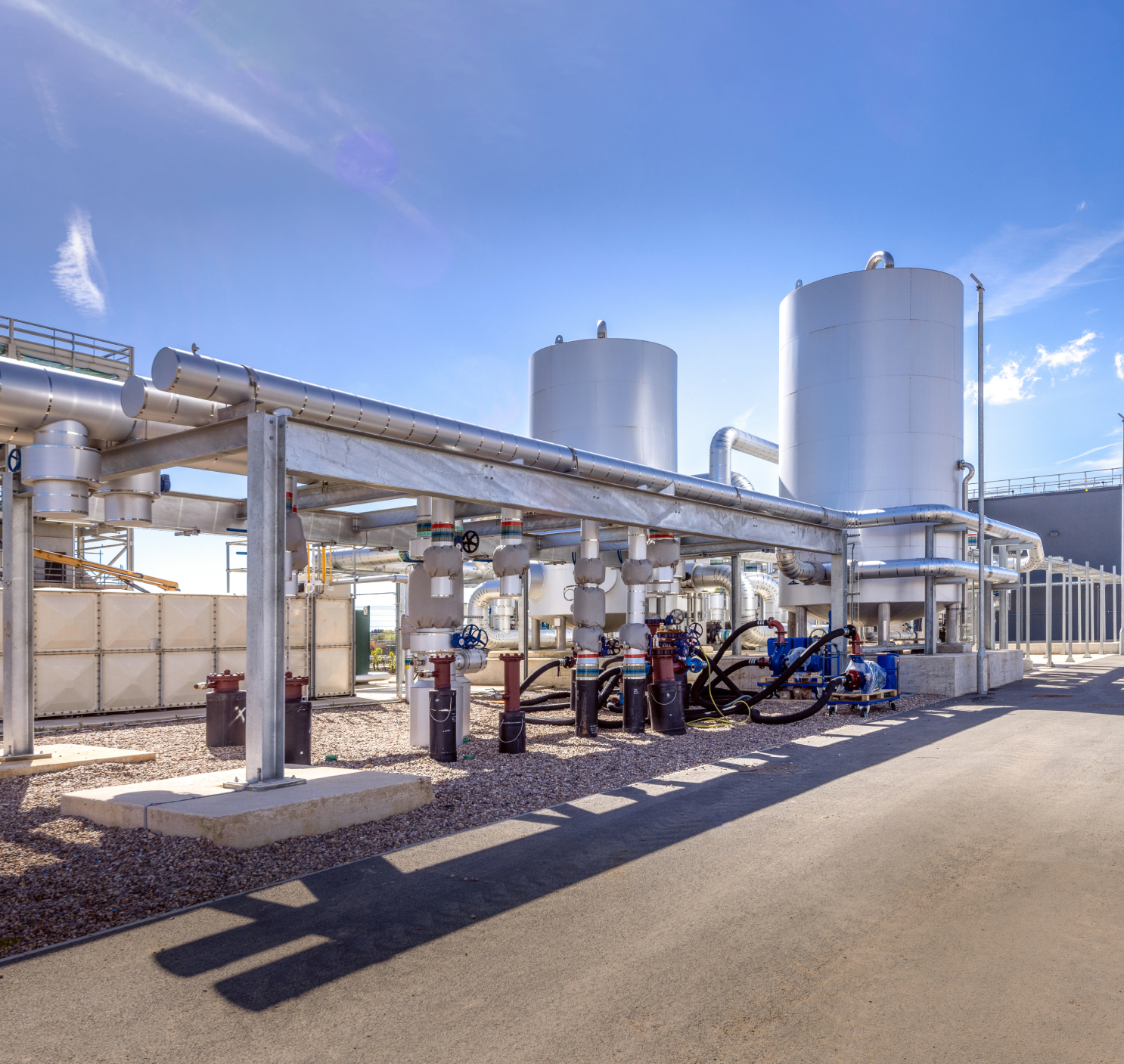 Chilled water will be generated by efficient, resilient industrial scale ammonia chillers centrally on the park, then circulated to all the buildings at 6°C